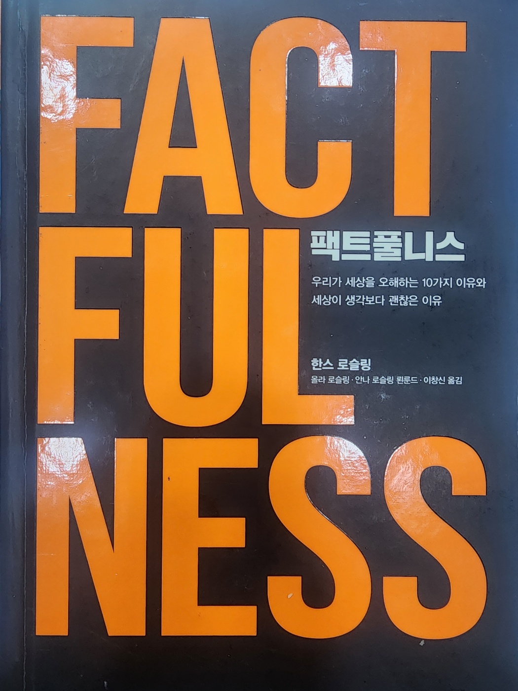 저자 한스 로슬링은 30개국의 사람들에게 "세게가 점점 좋아진다고 생각하는가~"라고 물었다. 다수의 답은 '점점 나빠진다' 였다. 하지만 통계로 볼때 세계는 점점 좋아지는 것들이 훨씬 많았다. 세계의 극빈층은 지난 20년간 세계 인구에서 거의 절반으로 줄었다. 전세계의 극빈층이 29%에서 9%로 줄었다. 기대수명도 1973년보다 평균 10년이상 늘었다.(2017년 통계 기준. 이 책이 처음 나온 때는 2019년이다.) 그 밖에 세계가 좋아지고 있는 예 32가지를 그래프로 책 속에 담아놓았다.